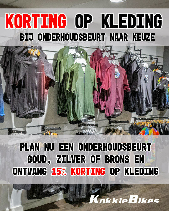 Laat een brons, zilver of gouden onderhoudsbeurt uitvoeren. Ontvangen 15 % korting op het volledig assortiment fietskleding uit voorraad.